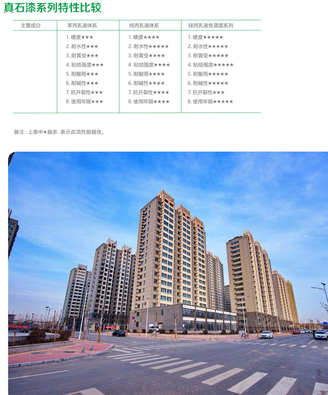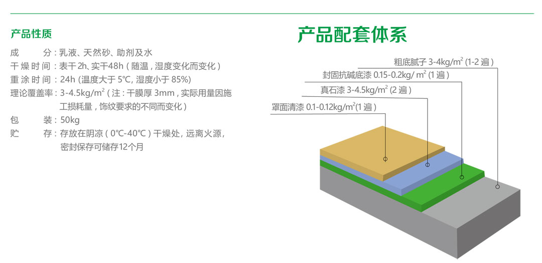 天然真石漆是由環(huán)保型高分子乳液聚合物和能構(gòu)成仿石材紋理的天然大理石骨料、助劑等材料組成的厚質(zhì)涂料 , 其外觀如石頭一般自然、穩(wěn)重、氣派并且附著牢固 , 具有優(yōu)異的耐候性、憎水透氣性、柔韌性和抗沖擊性 , 符合國(guó)家規(guī)定的 JG/T24《合成樹脂乳液砂壁狀涂料》標(biāo)準(zhǔn)。其裝飾性具有很強(qiáng)的仿石材及歐式風(fēng)格效果 , 是當(dāng)今社會(huì)高檔小區(qū)、別墅、公共建筑的主流裝飾材料。適用于所有平整的建筑物內(nèi)、外墻礦物質(zhì)材料基層 ,同時(shí)也是外墻外保溫體系理想的面層裝飾材料。